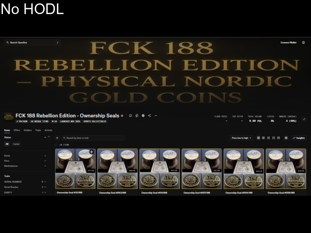 The ultra-exclusive FCK 188 Rebellion Edition – Physical Nordic Gold Coins, limited to just 188 pieces worldwide. Crafted by the visionary FCKers Club (owner of NoHODL.org), this is the first project of its kind—a bold fusion of memecoin legacy, collectible artistry, and blockchain innovation.